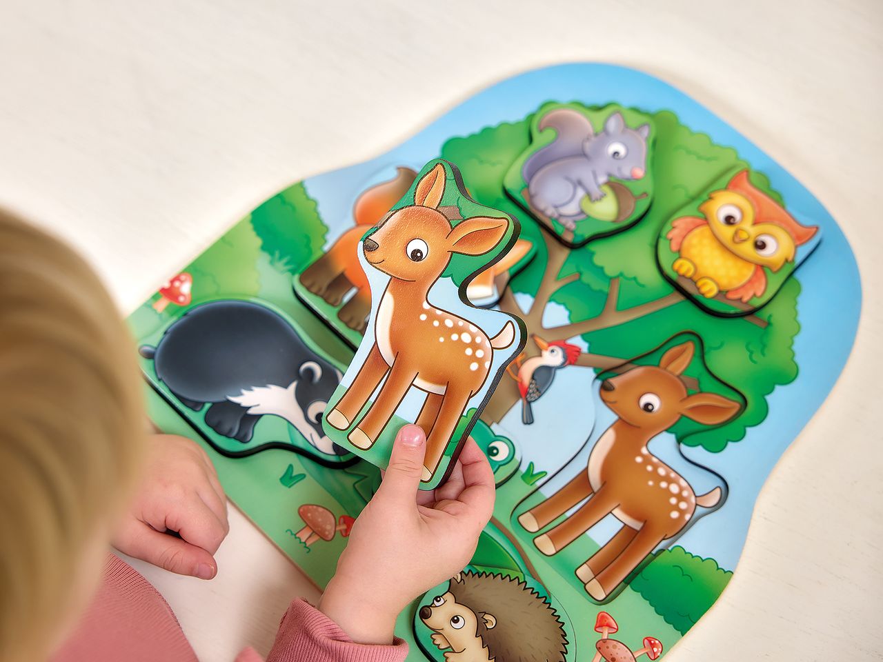 Descoperă magia pădurii cu acest puzzle din lemn In padure de la Orchard Toys. Conceput pentru mânuțele celor mici, acest puzzle fermecător prezintă piese robuste și ușor de ținut în mână, piese care alcatuiesc un bursuc, o vulpe, un arici, o broască, un cerb, o bufniță și o veveriță. Copiilor le va plăcea să plaseze fiecare animal în peisajul său din pădure, dezvoltând abilități cheie precum coordonarea mână-ochi si abilitatile motorii fine. Figurinele masive cu animale pot fi folosite și separat pentru jocuri imaginative, încurajându-i pe cei mici să exploreze minunile naturii într-un mod distractiv și practic.