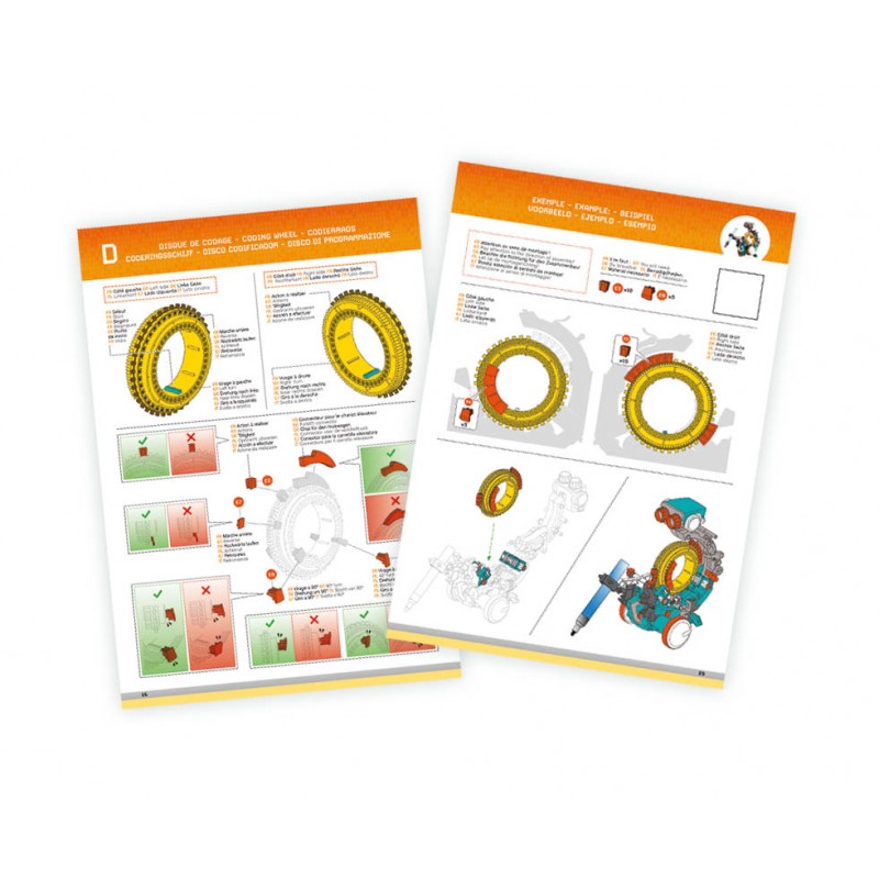 Asamblează robotul de codare Kodo și descoperă-i cele 5 funcții: desen, motostivuitor, clește, jucător de baschet și fotbal.