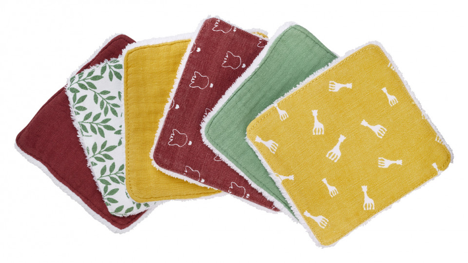 Set de 6 servetele lavabile pentru igiena zilnica a bebelusului! Mult mai ecologice decât șervețelele de unică folosință, șervețelele lavabile sunt reutilizabile, practice și igienice! Sunt ideale pentru curățarea delicată a bebelușului în timpul schimbării scutecelor, in timpul baitei sau pentru curățarea bebelușului după masă. Fiecare șervețel este alcătuit din: - o parte din bumbac organic imprimat. - o parte ultra moale pentru a proteja pielea sensibila a bebelusului.