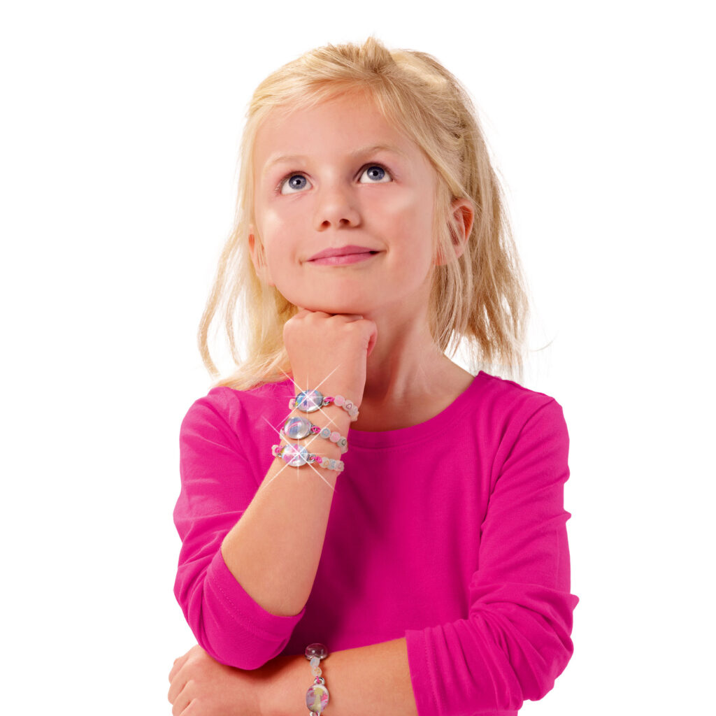 Cu ajutorul acestui set poti realiza de unul singur bratari minunate care stralucesc in intuneric! Setul contine 6 talismane pe care le poti face singur. Alege o poza pnetru fiecare talisman, lipeste-o pe baza, decoreaza cu sclipici si finiseaza cu pietrele bombate transparente. Activitatea dezvolta abilitatile motorii fine si creativitatea.