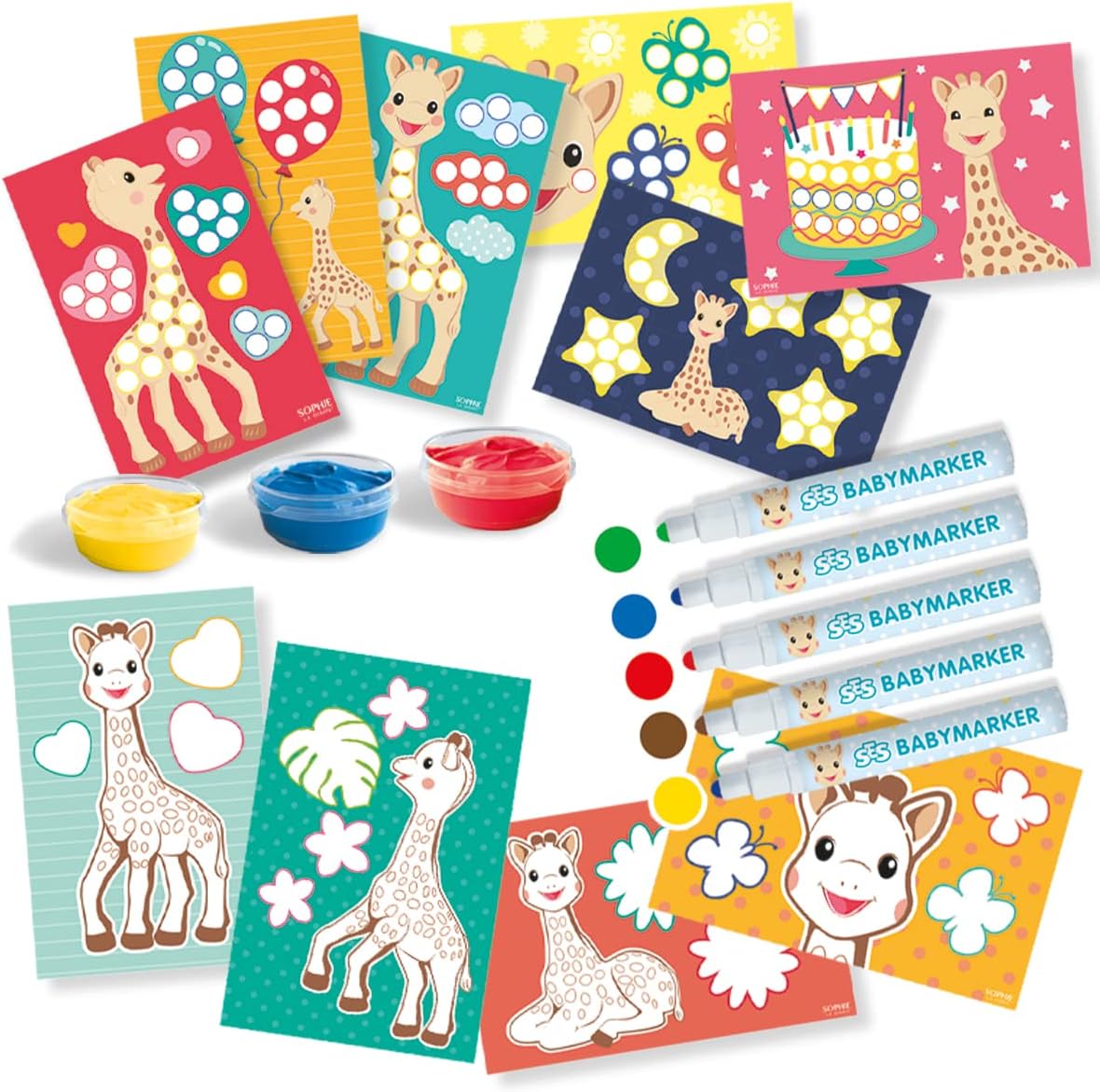 Bucură-te de colorat și pictat creativ cu setul de colorat și pictat Girafa Sophie de la SES Creative, perfect pentru micii artiști. Include vopsea galbenă, albastra si roșie pentru degete, coli de colorat, carioci și sabloane cu girafa Sophie pentru distracție creativă nesfârșită. Fabricat din materiale sigure și lavabile, potrivit pentru copiii cu vârsta de 1 an și peste, incurajand creativitatea și abilitățile motorii fine.