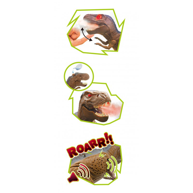 Dinozaur T-Rex (31 cm) de jucarie cu telecomanda. Membrele sunt articulate si scoate "fum" pe gura. Telecomanda actioneaza pe o raza de 3 m.