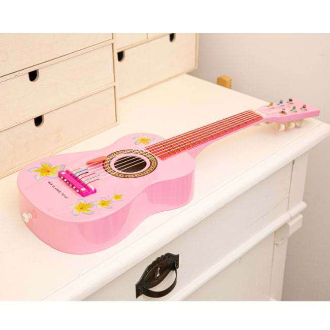 Aceasta chitara din lemn de fag lacuit cu detalii decorative este un instrument muzical ideal pentru a dezvolta coordonarea mana-ochi si a incuraja creativitatea muzicala.