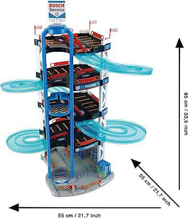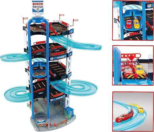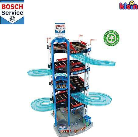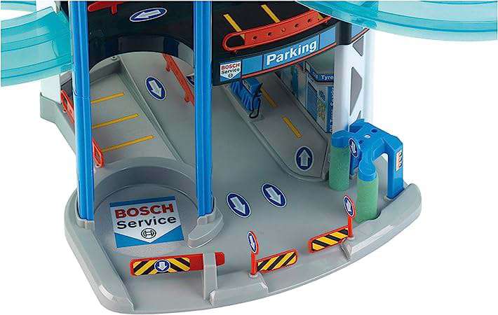 Parcarea cu mai multe etaje de înaltă calitate, solid construită, în designul cool Bosch Car Service antrenează creativitatea și gândirea spațială a copiilor.