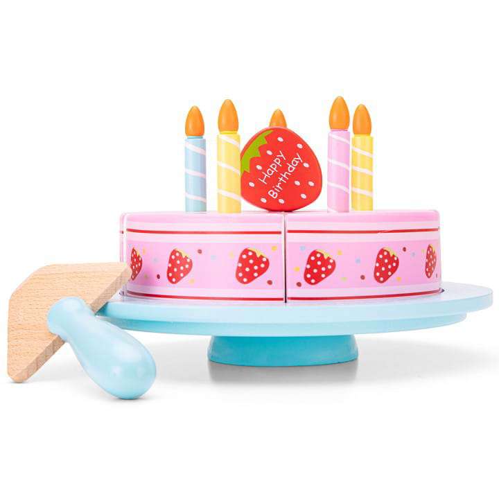 Este realizat din lemn robust și le va oferi copiilor ore întregi de distracție. Se vor bucura să cânte la mulți ani, să stingă lumânările și să taie tortul cu ajutorul feliatorului inclus in set. Cele cinci bucăți din tort pot fi repuse cu ușurință împreună datorită închiderii cu arici, permițându-i copilului să se joace cu acest set din nou și din nou.