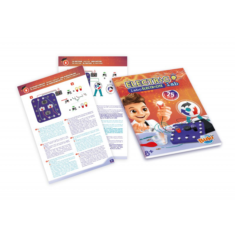 Descoperiți notiunile de bază ale electricității construind 25 de circuite în siguranță totală. Conectati componentele pe plansa: becuri, sonerie, motor, rezistori sa. Descoperiti cum circula curentul electric prin circuitul creat de dvs.