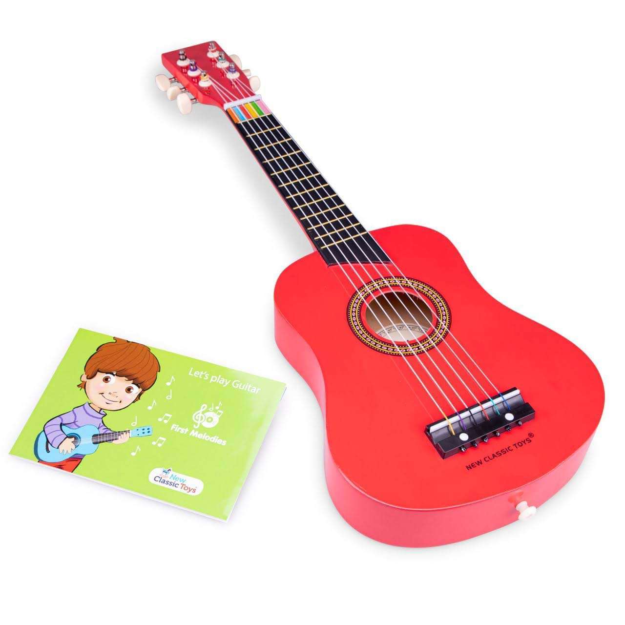 Aceasta chitara din lemn natur este un instrument muzical ideal pentru a dezvolta coordonarea mana-ochi si a incuraja creativitatea muzicala.