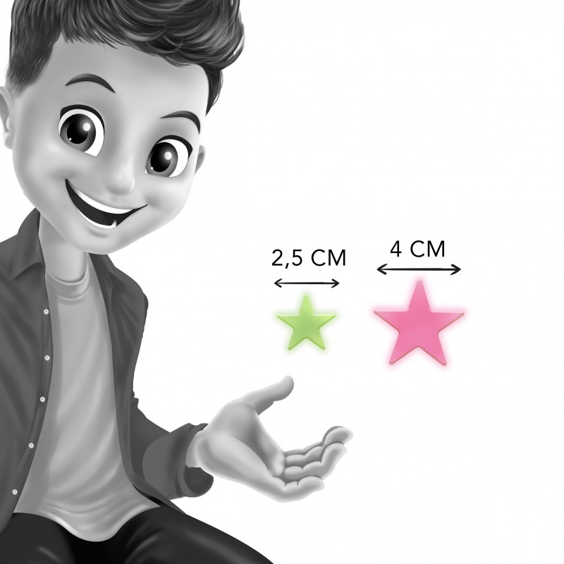 Stele fosforescente de lipit pe pereții sau tavanele dormitorului. Expuneți stelele la lumină timp de un minut și vor străluci timp de o oră.