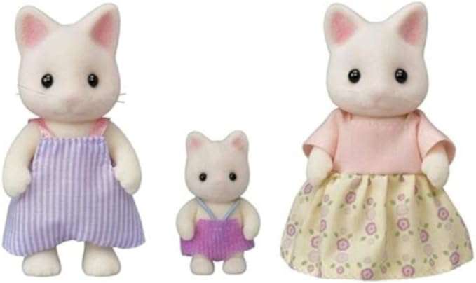 Setul de Figurine Sylvanian Families - Familia Pisicutelor Floral este format din cele trei personaje: tatal Minos, mama Cherice si fetita lor, Keana.