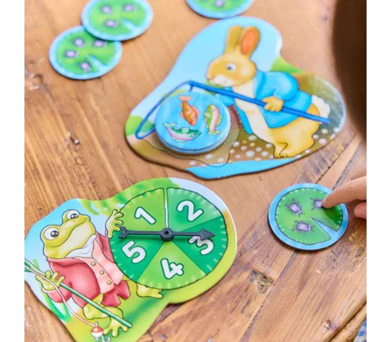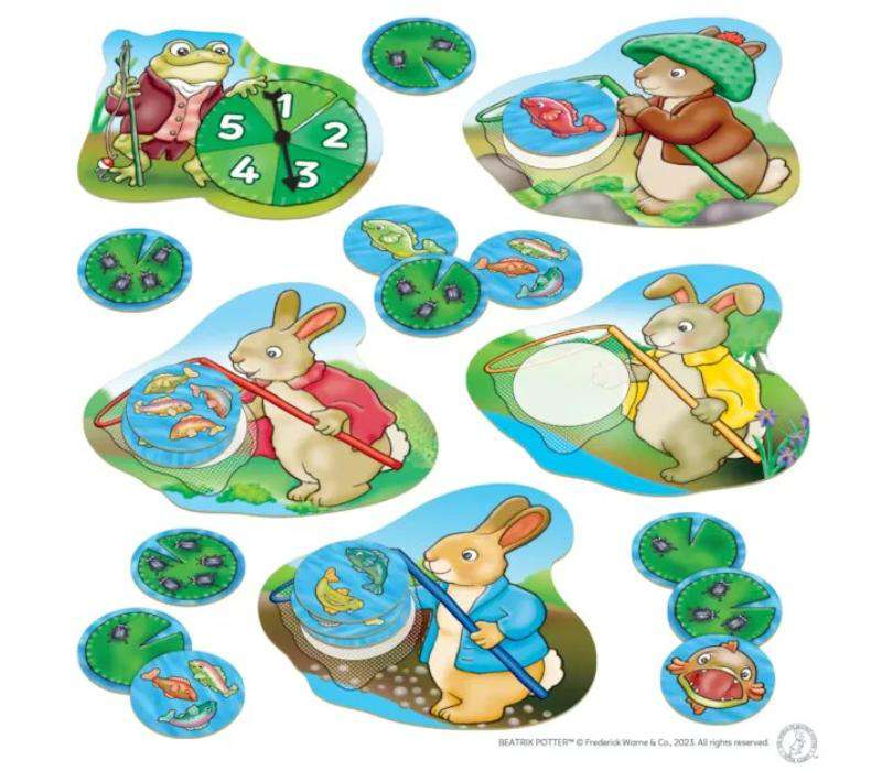 Pregatiti-va pentru o aventura captivanta la pescuit alaturi de Petter Rabbit, Jeremy Fisher, Benjamin si Flopsy, incercand sa prindeti cat mai multi pesti pana la finalul jocului. Invartiti sageata si cautati un cartonas cu acelasi numar de gandacei ca si numarul indicat de sageata. Intoarceti cartonasul si vedeti cati pesti ati prins. Aveti grija la pestele spinos care va poate fura toata captura!