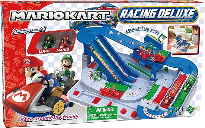 Jocul Super Mario - Kart Racing Deluxe este un joc de curse rapide pentru adevaratii pilotii de raliu! Cine conduce cel mai repede pe pista de curse? Atentie, insa! Fiecare pista are diferite obstacole, viraje, rampe si pante. Pentru a ajunge la linia de sosire trebuie sa depasiti urmatoarele obstacole: o pasarela, o rampa, un pod denivelat, o pista cu serpentine, mai multe trepte si o scara rulanta. Manevrati cu pricepere masina peste obstacole si cu ajutorul butoanelor si parghiilor.