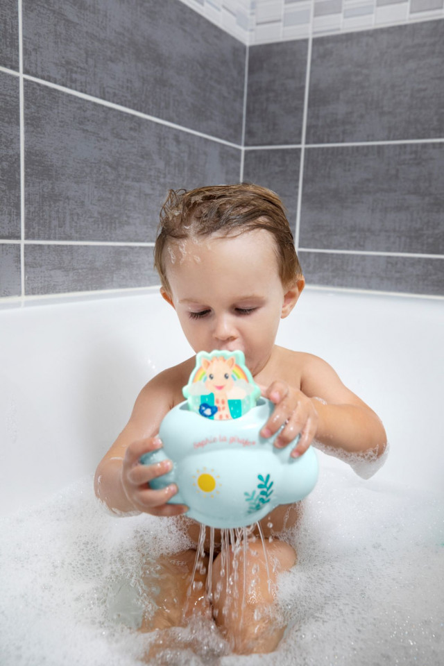 Norul lui Sophie pentru a-l distra pe bebe în baie! O stropitoare si jocul de-a v-ati ascunselea il va amuza pe bebe in timpul baitei! Cand jucaria este scufundata in apa, girafa Sophie iese din norisor, aparand ca prin magie. De indata ce jucaria iese din apa, norul va dispersa apa, iar Sophie se va ascunde. Decorat fata/spate pentru a spune o multime de povesti! Usor de apucat si manipulat de mainile mici ale bebelusului.