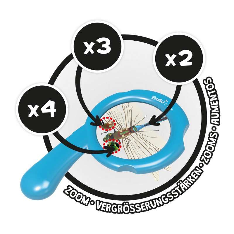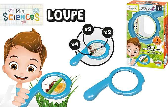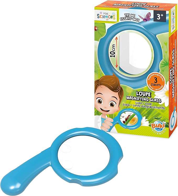 O lupă ușor de manevrat pentru copiii mai mici, care mărește de 2, 3 sau chiar de 4 ori! Mărirea variază în funcție de zona lupei. Diametru lupa 10 cm.