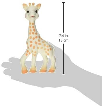 * Dimensiuni jucarie Girafa Sophie: inaltime 17 cm Inelul de dentitie girafa Sophie este moale, excelent pentru calmarea durerilor cauzate de aparitia primilor dintisori.