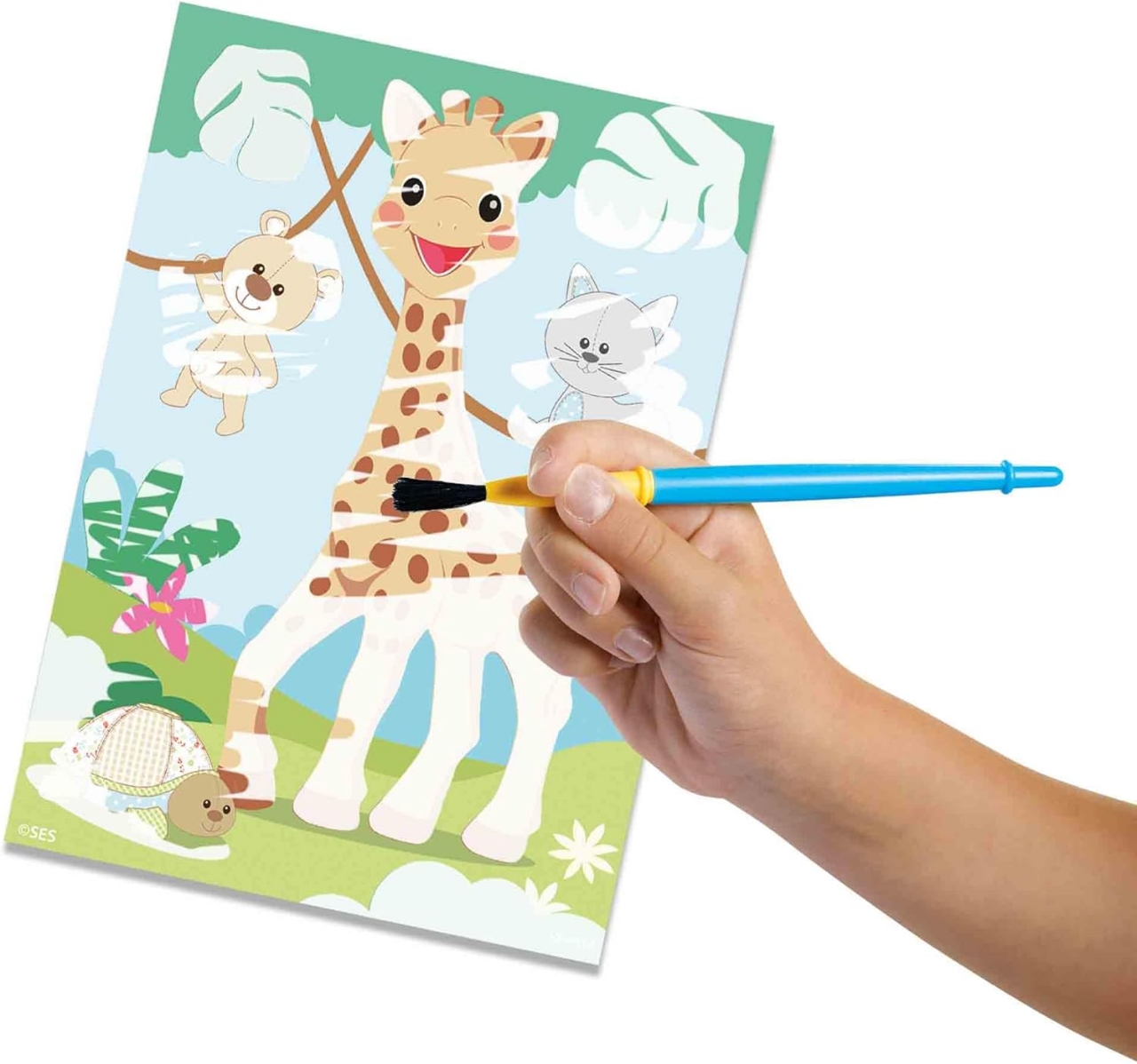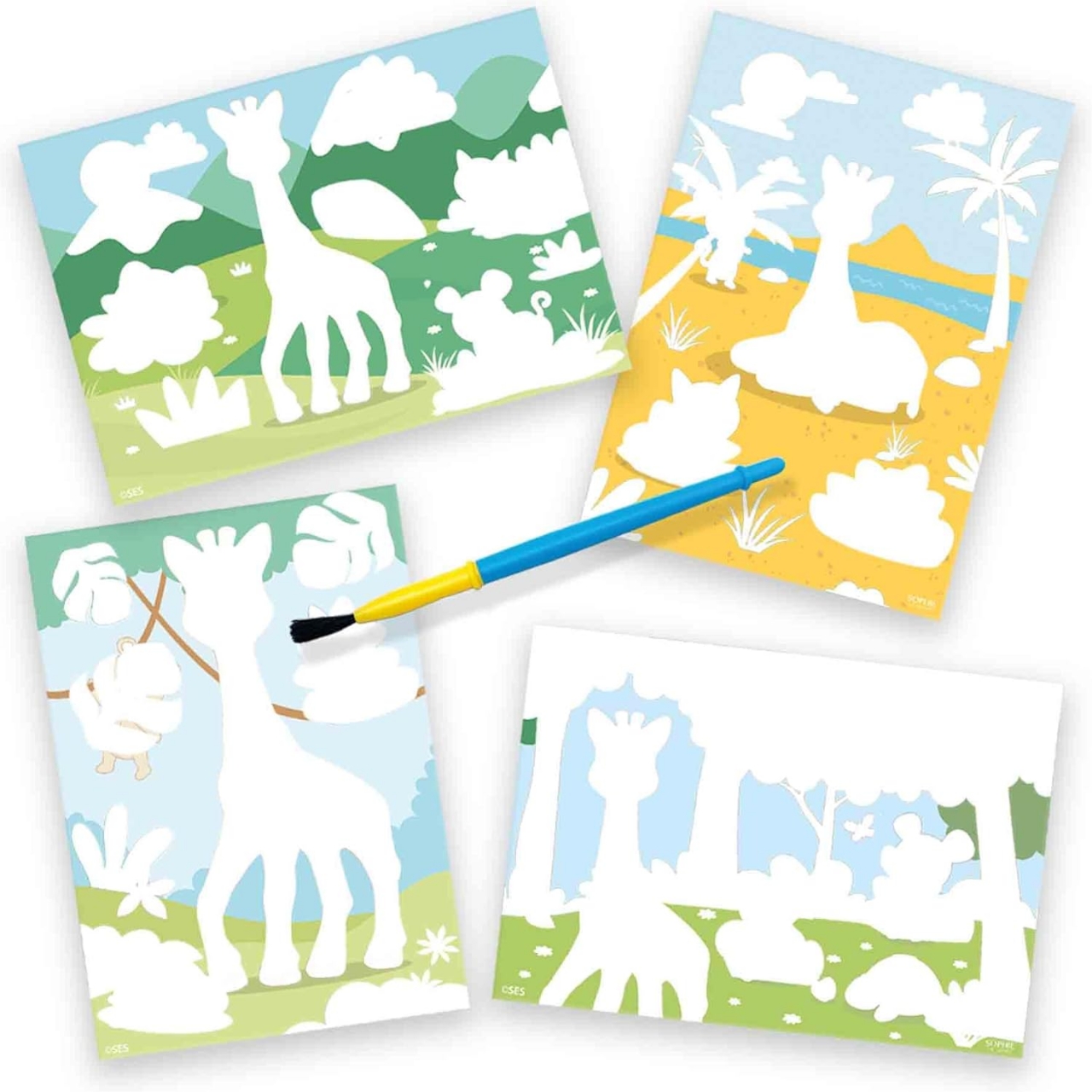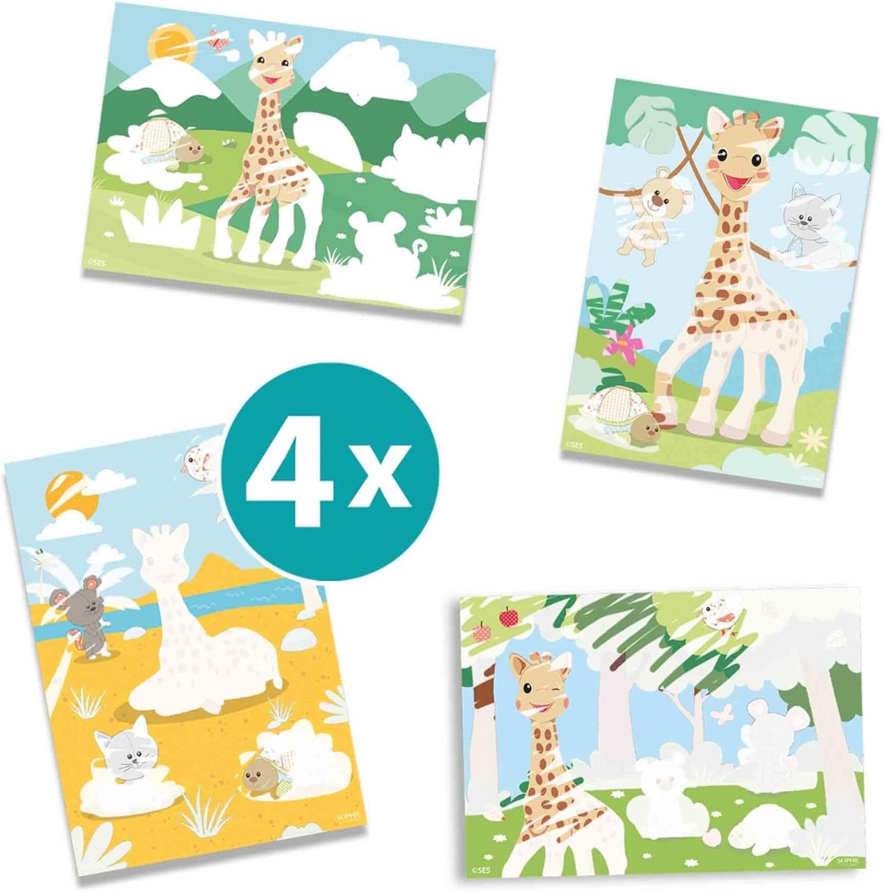 Continut: 4 planse reutilizabile cu girafa Sophie, pensula.