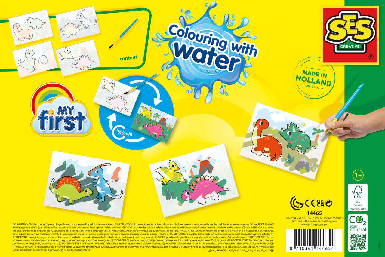 Vopsește cele 4 cartonase cu o pensulă umedă și vezi cum ilustrațiile cu dinozauri prind viață.