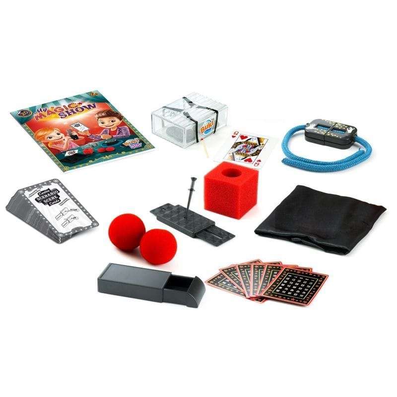 Atrage-ti copilul sa se pregateasca pentru spectacolul magic! Setul contine 20 de trucuri magice explicate pas cu pas si 24 de carti ilustrate cu scenarii magice de urmat. Dimensiunea cutiei: 30x30x7,8 cm. A se utiliza sub supravegherea unui adult.