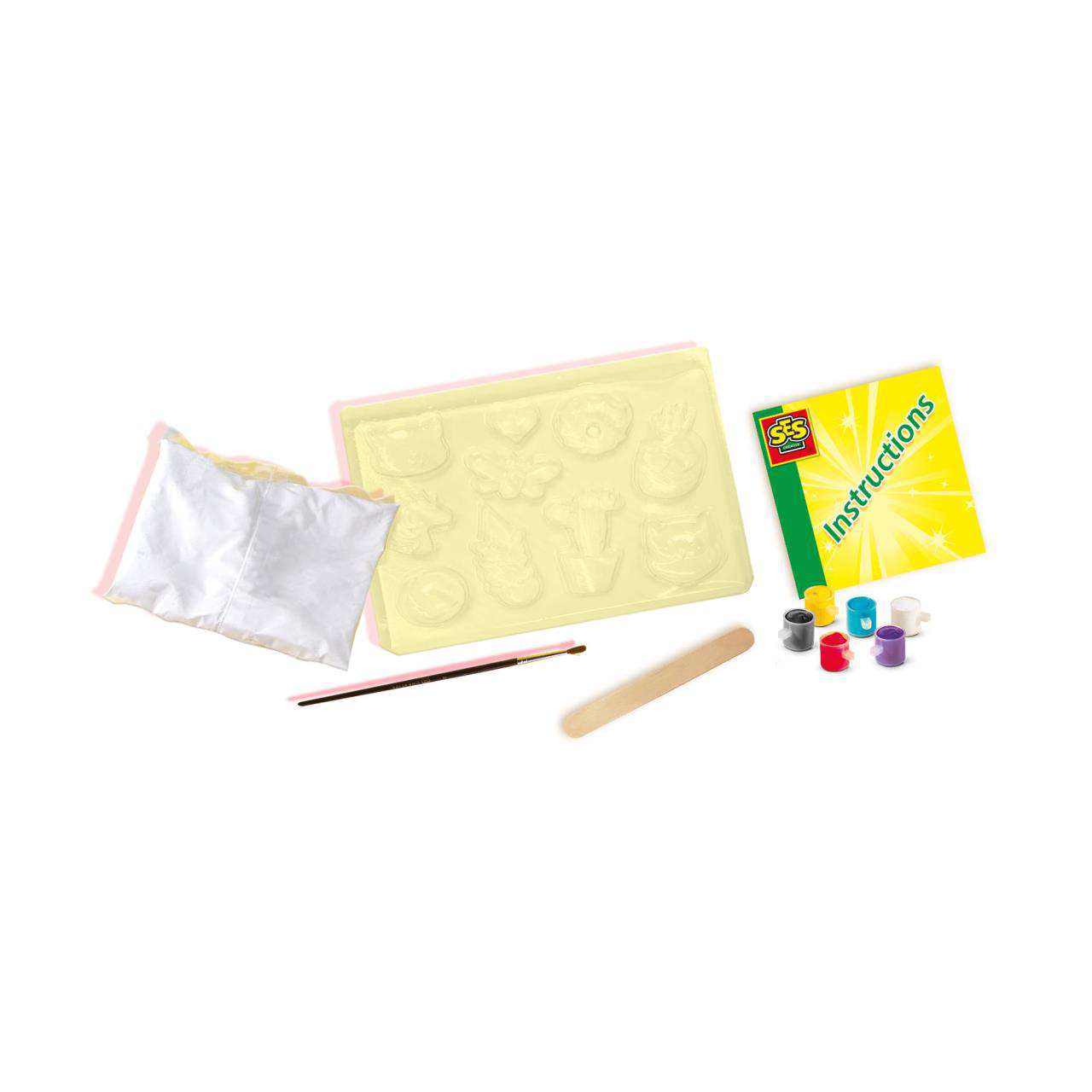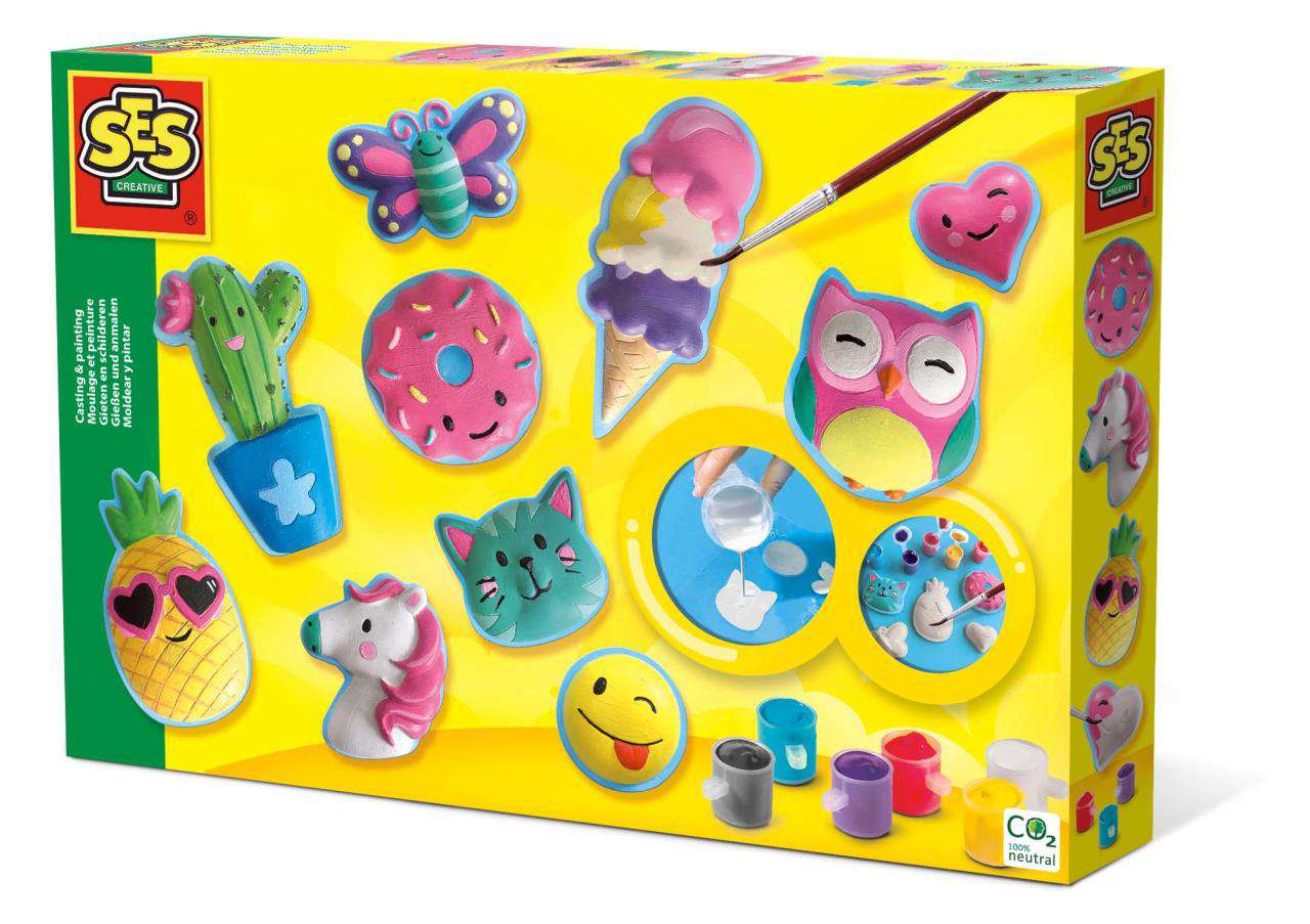 SES prezintă o modalitate fantastică și neobișnuită prin care copiii pot deveni creativi. Cu acest kit distractiv și ușor de utilizat, începe prin a realiza formele de ipsos, turnând amestecul in matrițele din plastic. După ce s-au întărit și uscat, pictează modelele așa cum îți place, folosind vopselele incluse. O modalitate excelentă de a dezvolta creativitatea, concentrarea și abilitățile motorii fine.